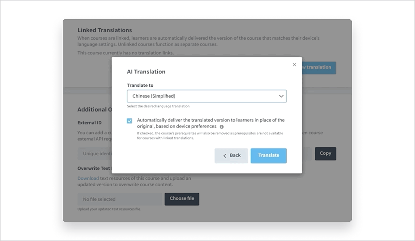 AI empowers LMS to recognize speech, translate texts, analyze data, and even make decisions. For example, LMS can automatically tag learning content, translate course content into multiple languages, or suggest courses that are relevant to each learner.