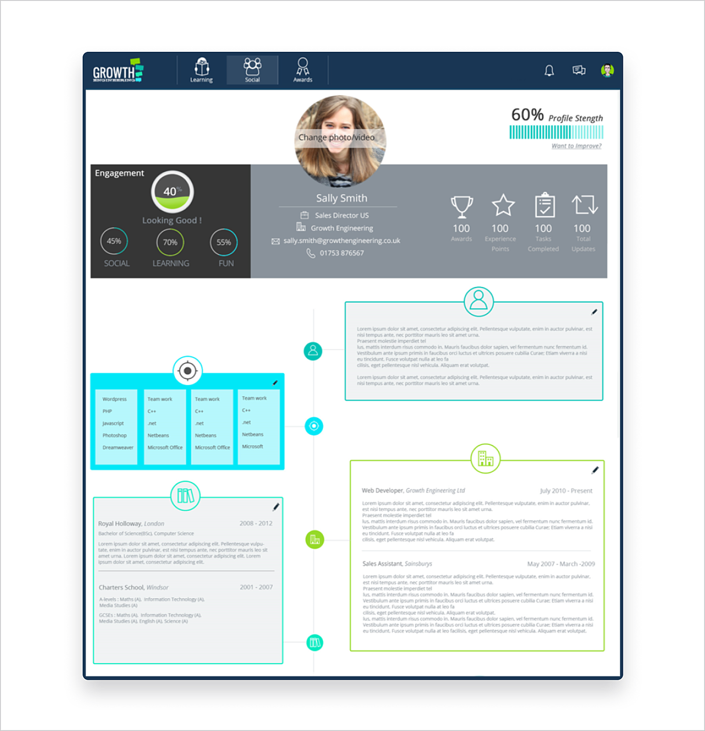 This Artificial Intelligence-powered Learning Management Platform is designed by Growth Engineering entirely around gamification. Its core features are