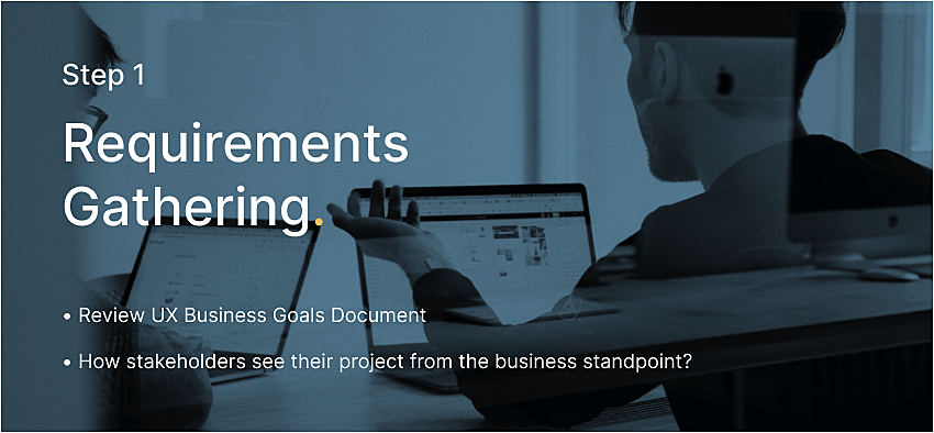 Step one. Requirements Gathering / Review UX Business Goals Document