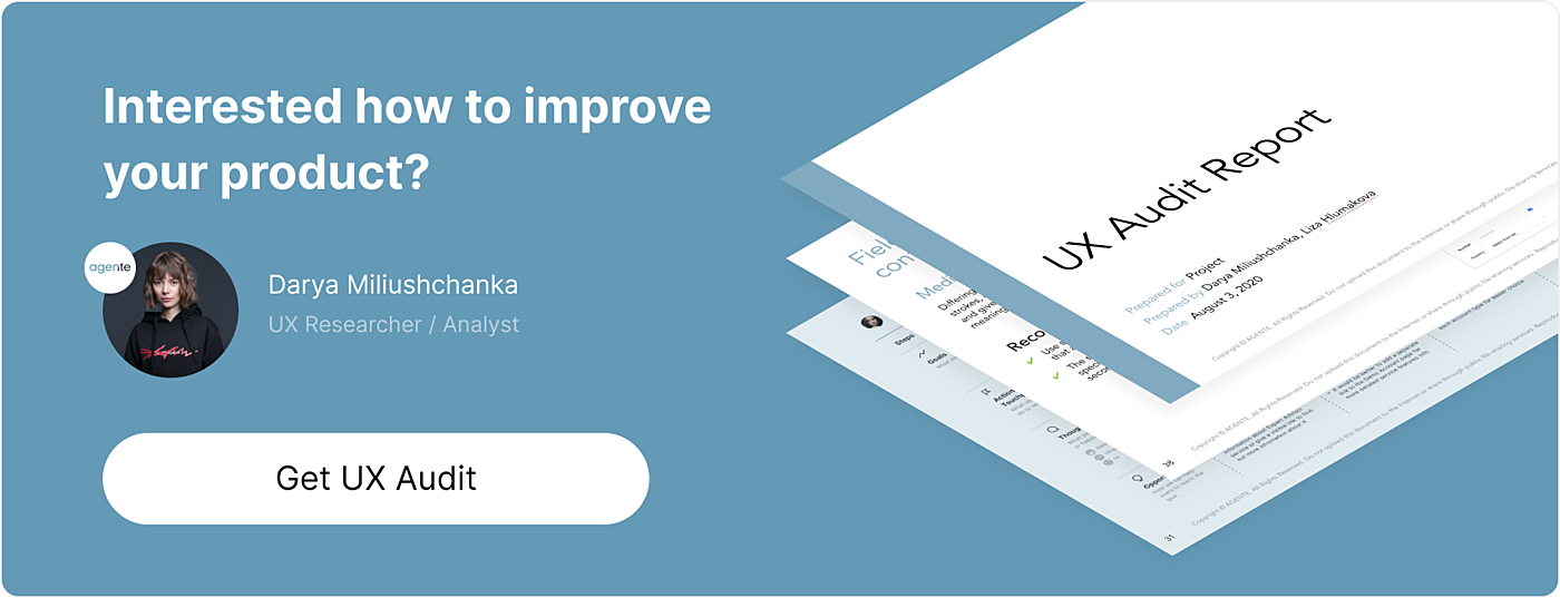 Feel free to contact Agente to get a UX research that will improve your software solution.